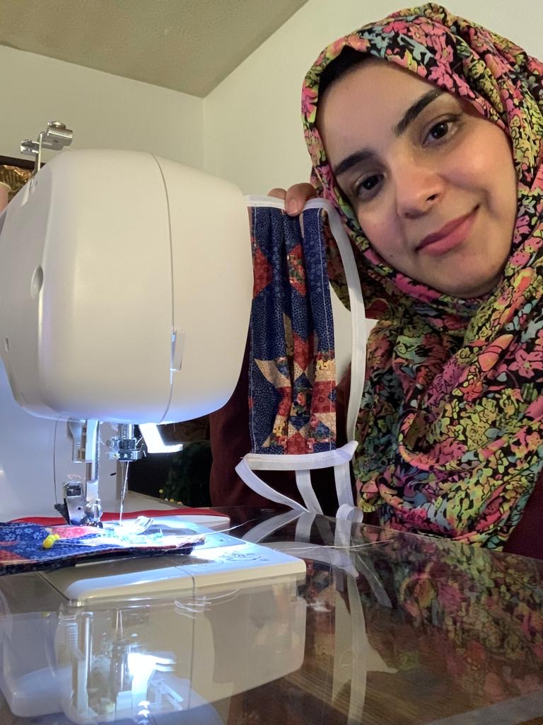 One of our amazing Americana Fiberworks ladies showing off her hard work and homesewn face mask to be provided to the Louisville community