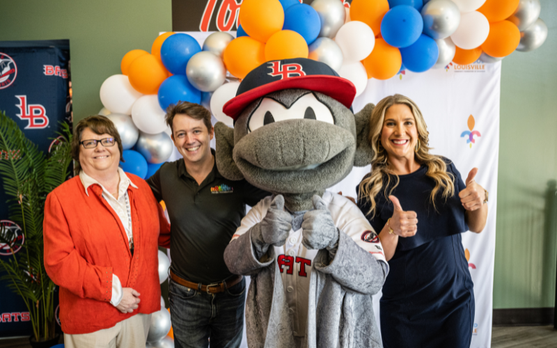 Partners - Give for Good Lousville Partners Churchill Downs, Derby City Gaming, and Louisville Slugger Field pictured posing during the 9th annual giving day.