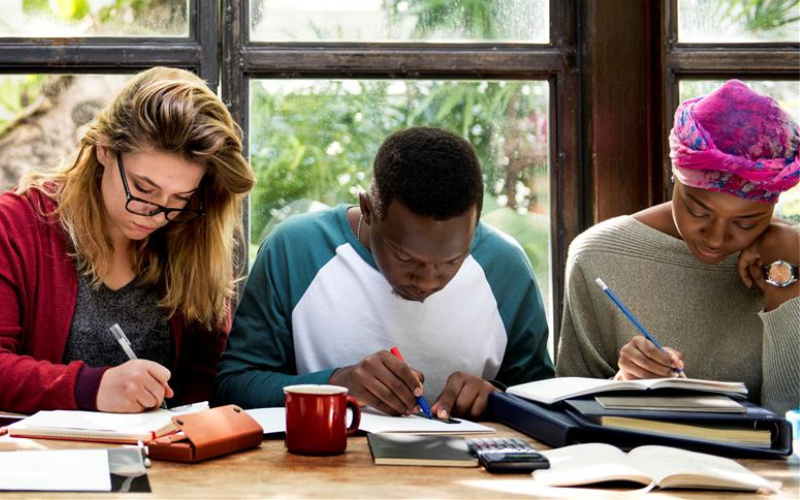 Pictured: Three students reviewing grant applications for the Artemis Fund grant application.