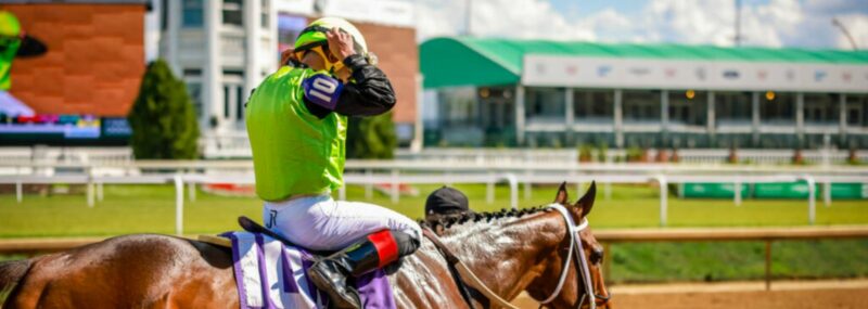 Jockey riding on top of a race horse