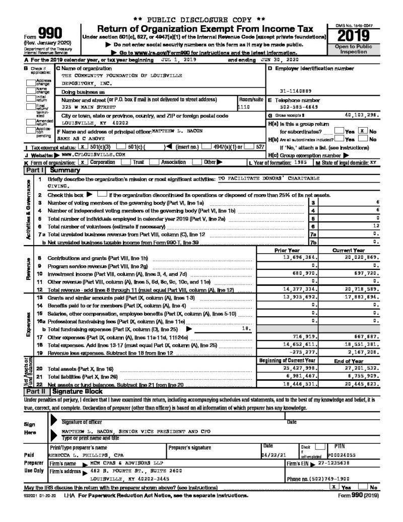 Fiscal 2020 – Form 990 PDC – The Community Foundation of Louisville Depo…