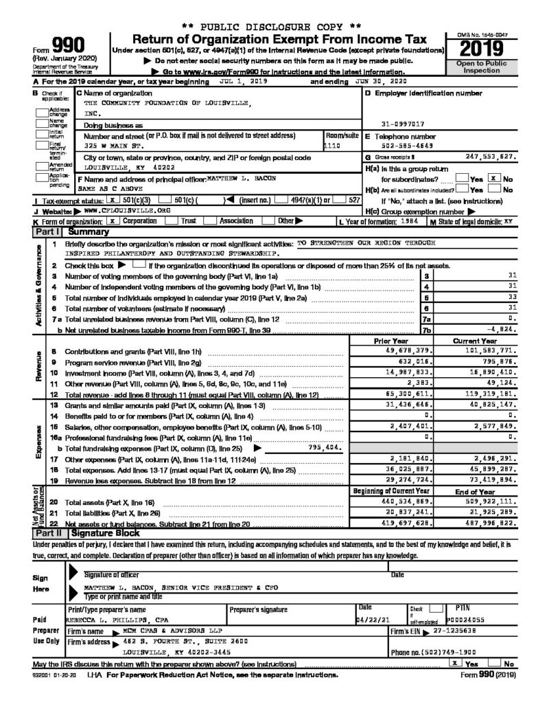 Fiscal 2020 – Form 990 PDC – The Community Foundation of Louisville Inc