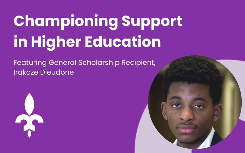 Blog story entitled "Championing Support in higher education" featuring General Scholarship recipient Irakoze Dieudone