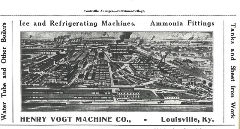 Pictured: An advertisement for the Henry Vogt Machine Company placed in the Louisville Anzeiger (in publication between 1849 and 1909).