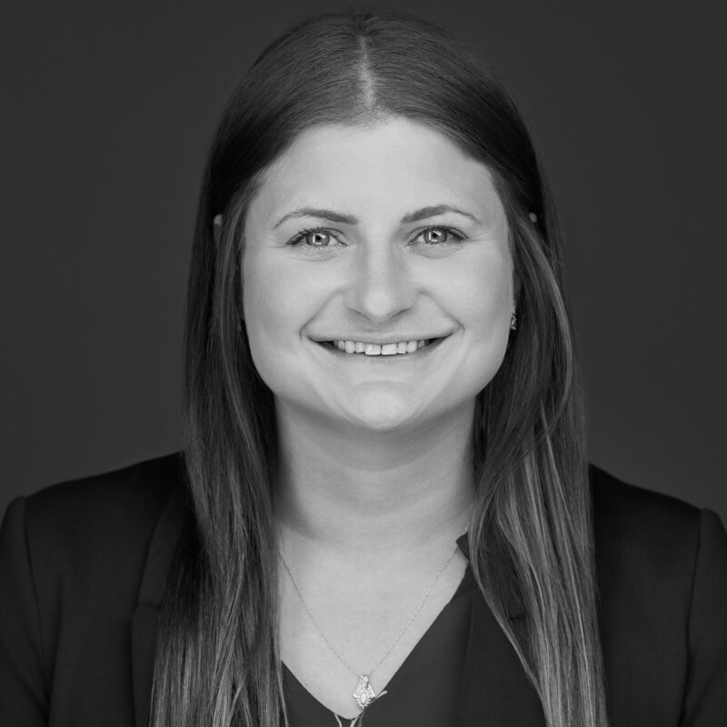 Ashley Batliner, Associate of Grants at the Community Foundation of Louisville. Black and white photo.