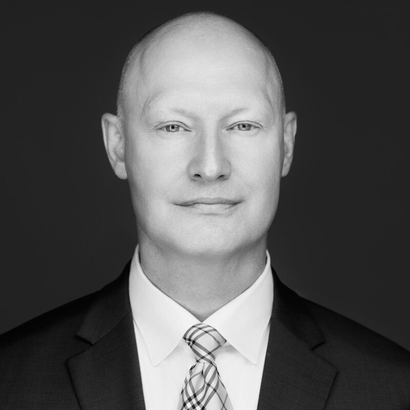 Matt Bacon, Executive Vice President and Chief Financial Officer at the Community Foundation of Louisville. Black and white photo.