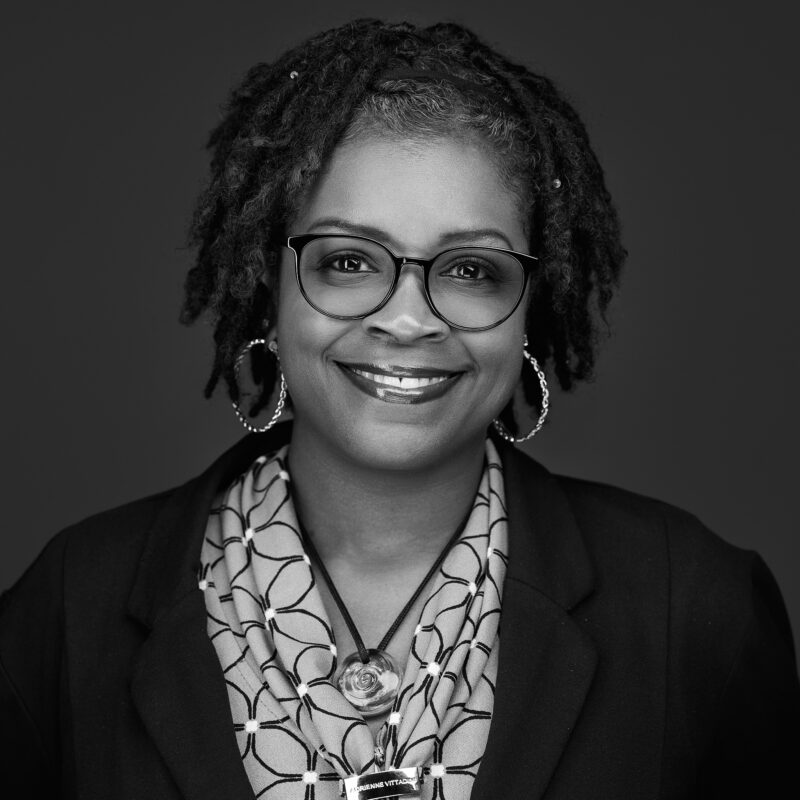 Shaun Jackson-Alexander, Manager of Office Services and Events at the Community Foundation of Louisville. Black and white photo.