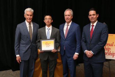 Henry Heuser Jr., David Do, Mayor Greg Fischer, and Dr. Marty Pollio awarding David the Vogt Educational & Leadership Scholarship.
