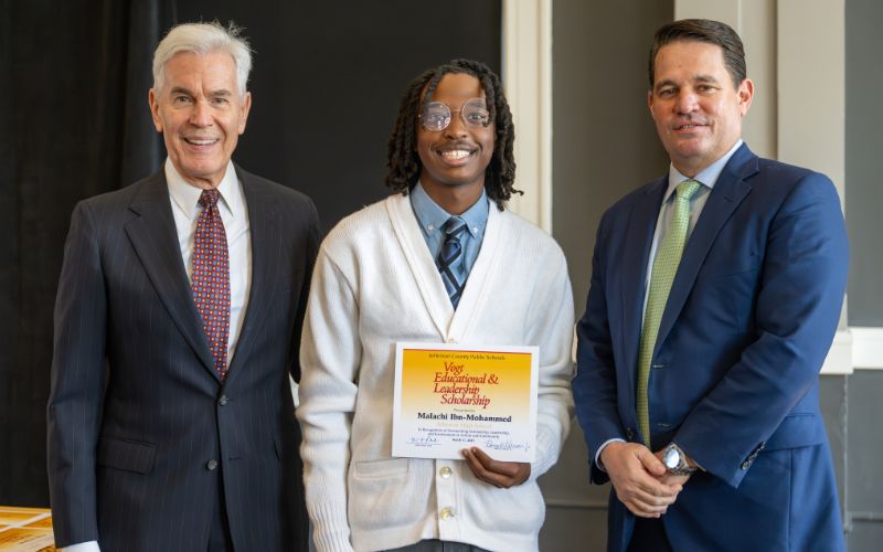 Pictured Left to Right: Foundation Fundholder, Henry Heuser Jr., Vogt Scholarship Recipient, Malachi Ibn-Mohammad, and Former JCPS Superintendent, Dr. Marty Polio