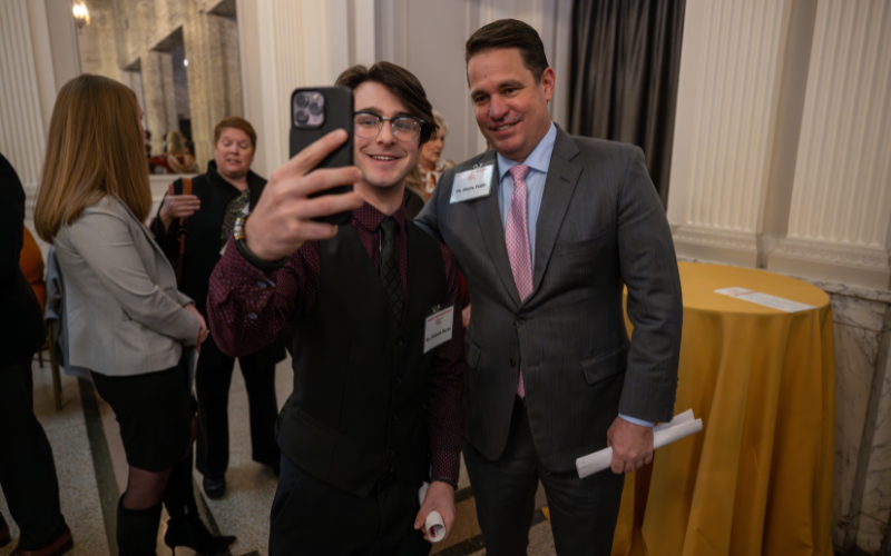 student taking a selfie with the jefferson county public school superintendent